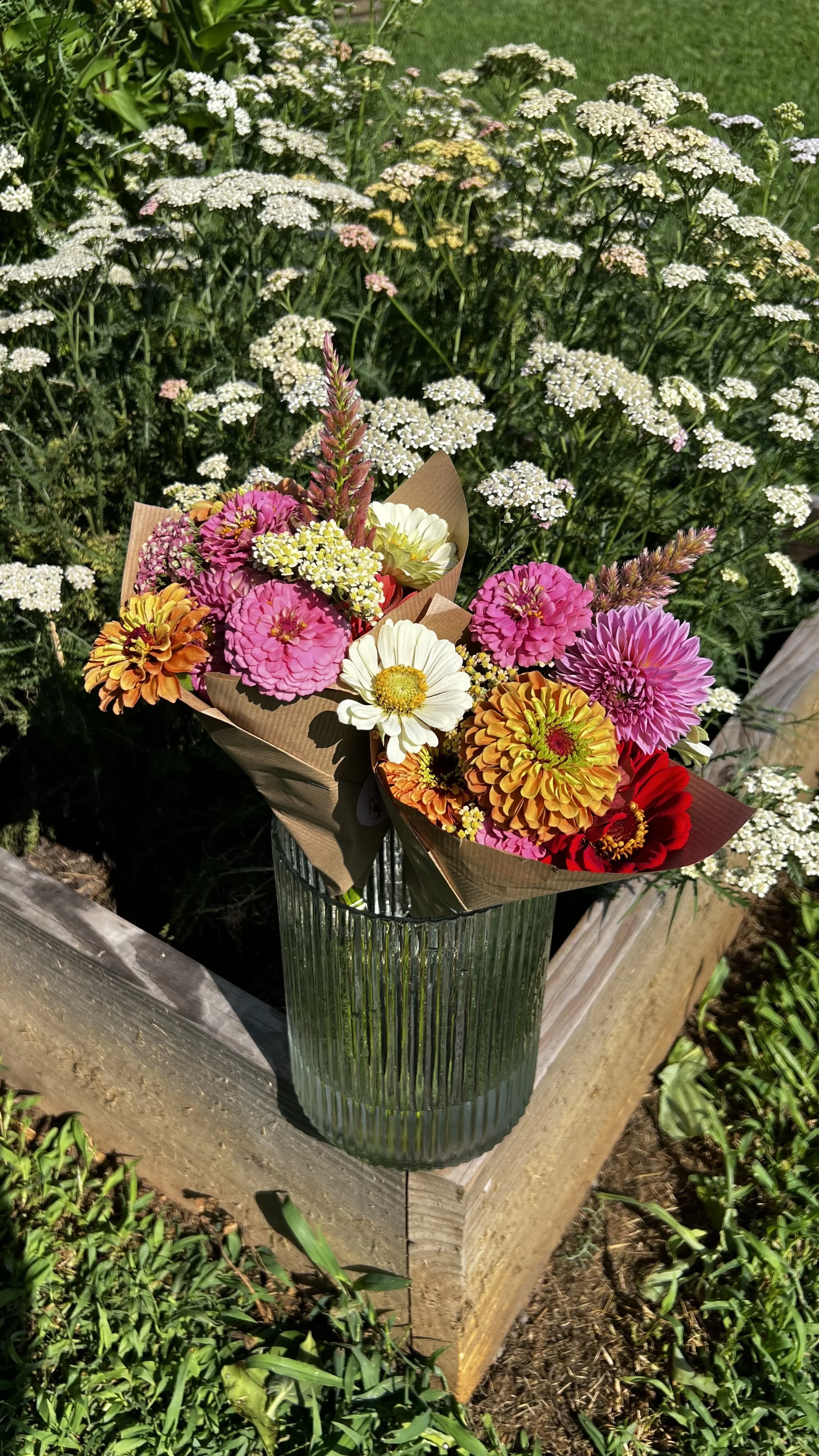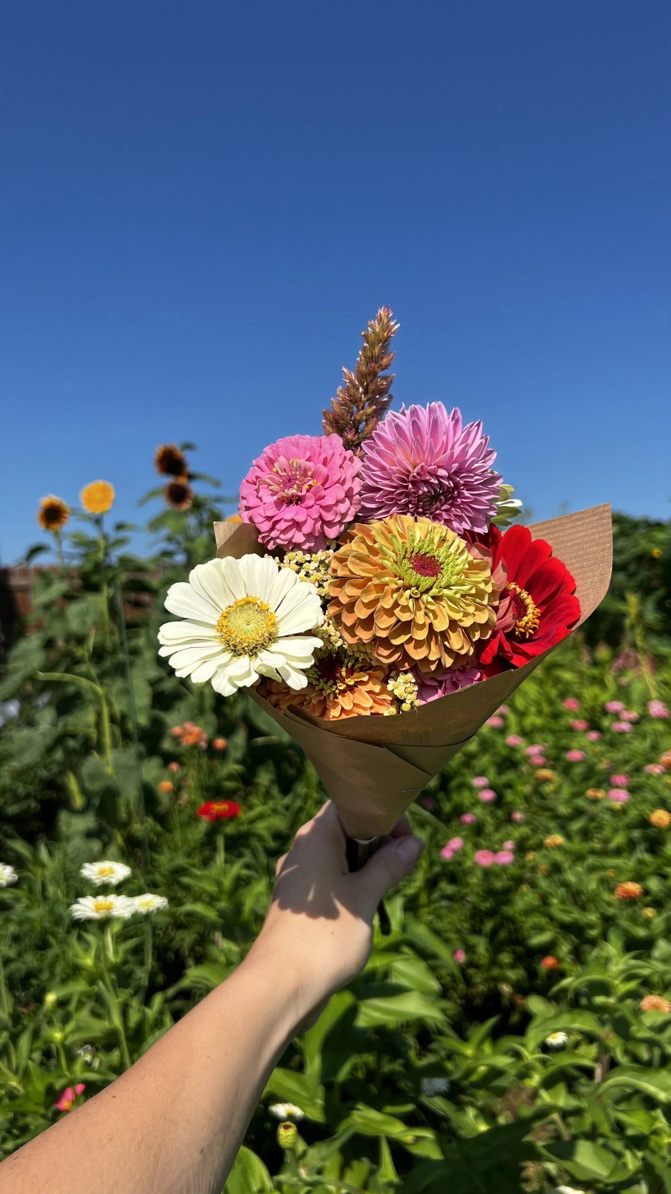 Categories: All Flowers Merch All | Flowers | Merch | Heirloom Chrysanthemum Bouquet $25.00 Dahlia Bouquet from $25.00 Sold Out Sourdough Cookies $15.00 Wrapped Bouquet from $18.00 Tulip Bouquet $35.00 Sold Out Mini Jar Sale Price: $6.50 Original Price: $10.00 Sold Out Sunflower Bunch $10.00 Logo Sticker $3.00