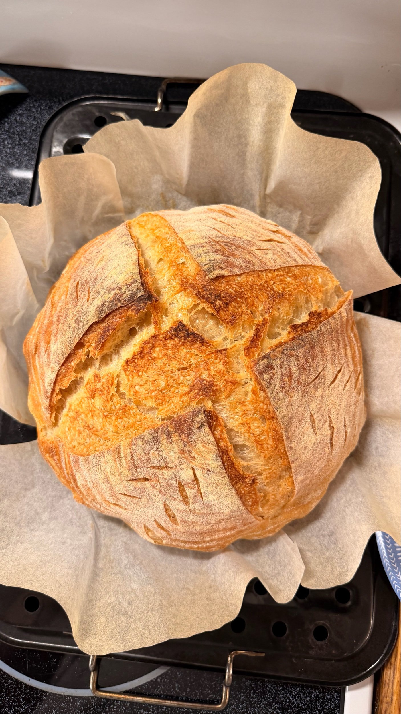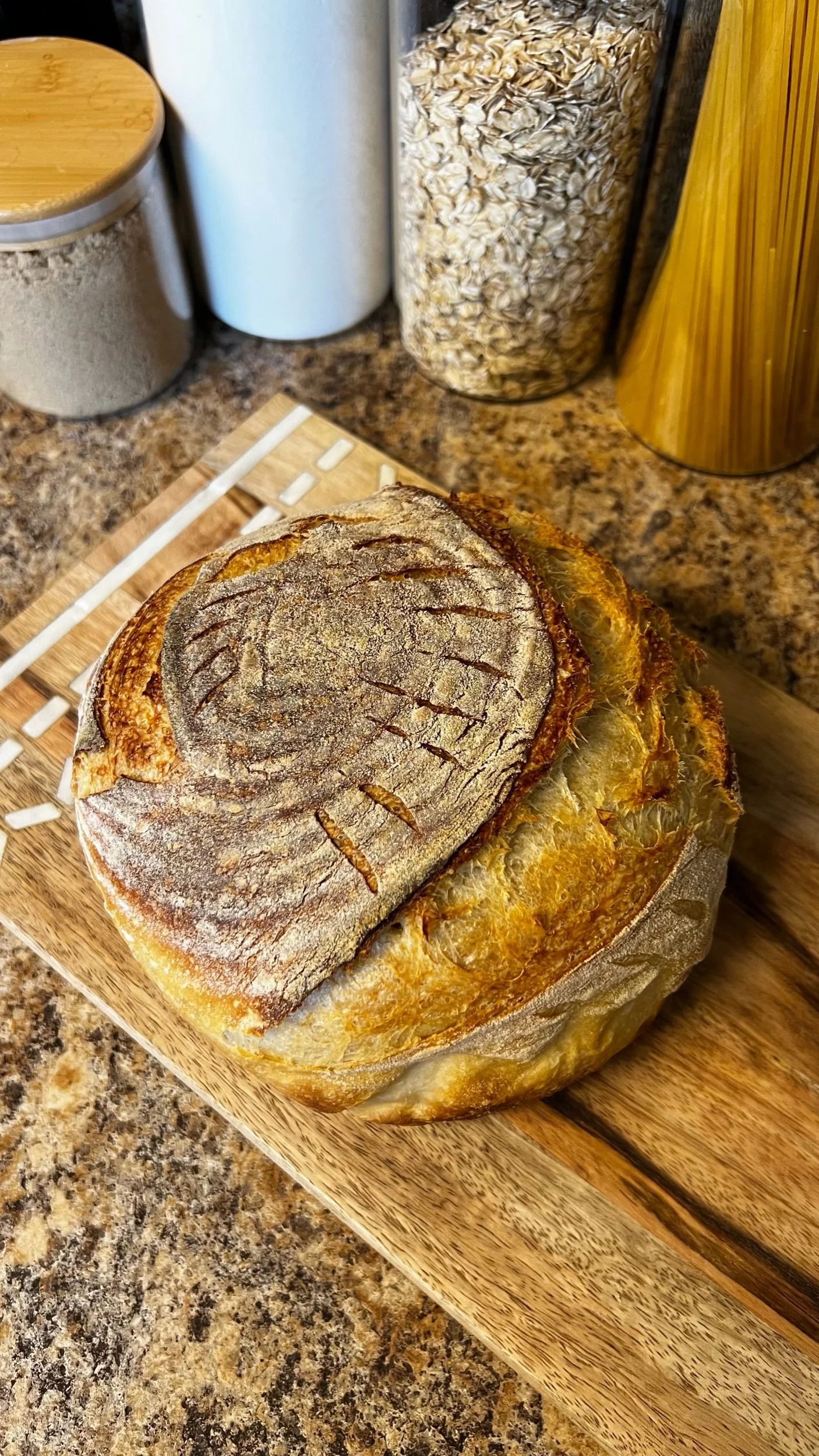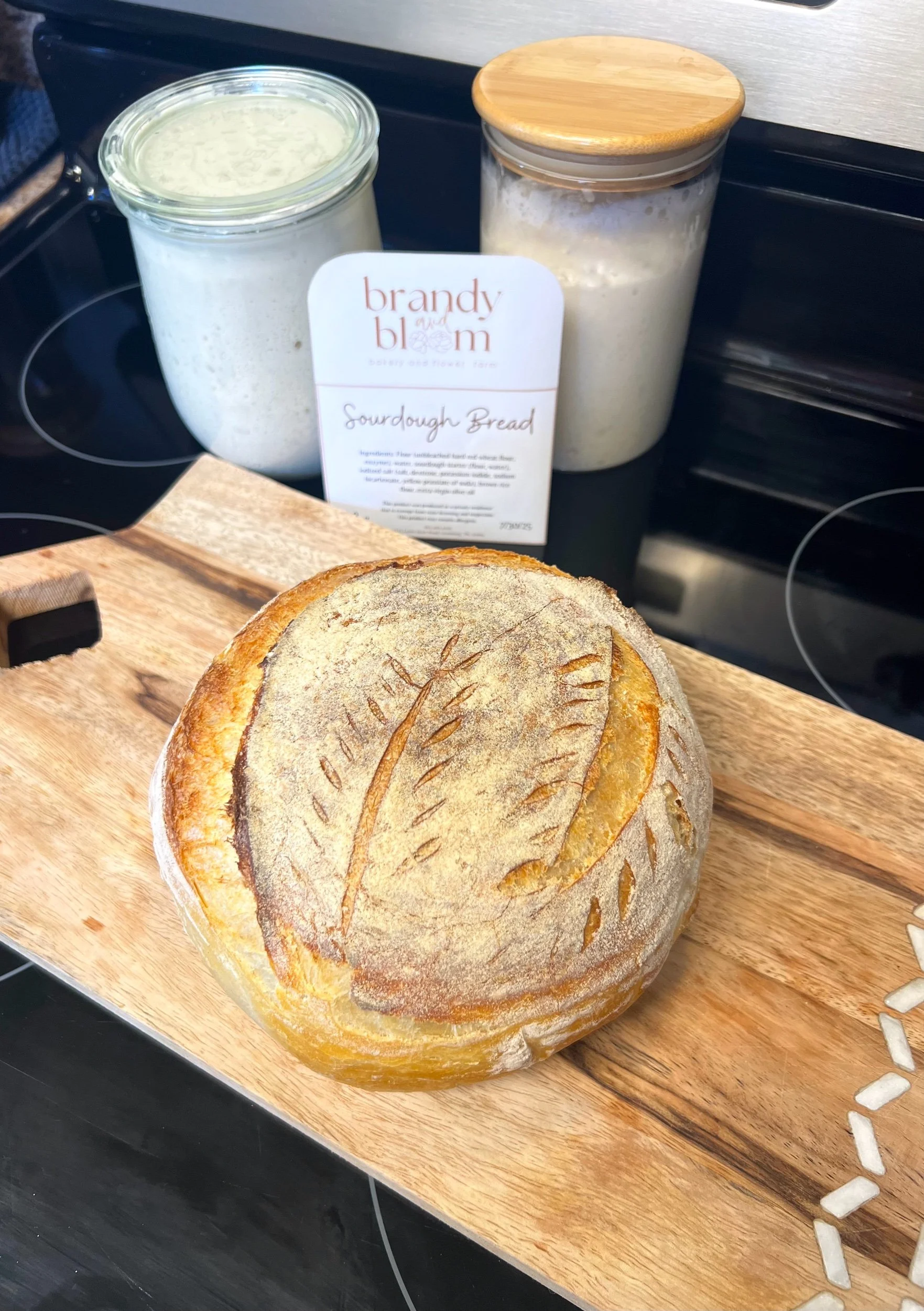 Handcrafted sourdough loaf with a crisp, golden crust and a tender, chewy crumb. Made from a naturally fermented starter, each loaf undergoes slow fermentation for delicious, deep flavor. Perfect for toasting, sandwiches, or simply enjoyed with butter.